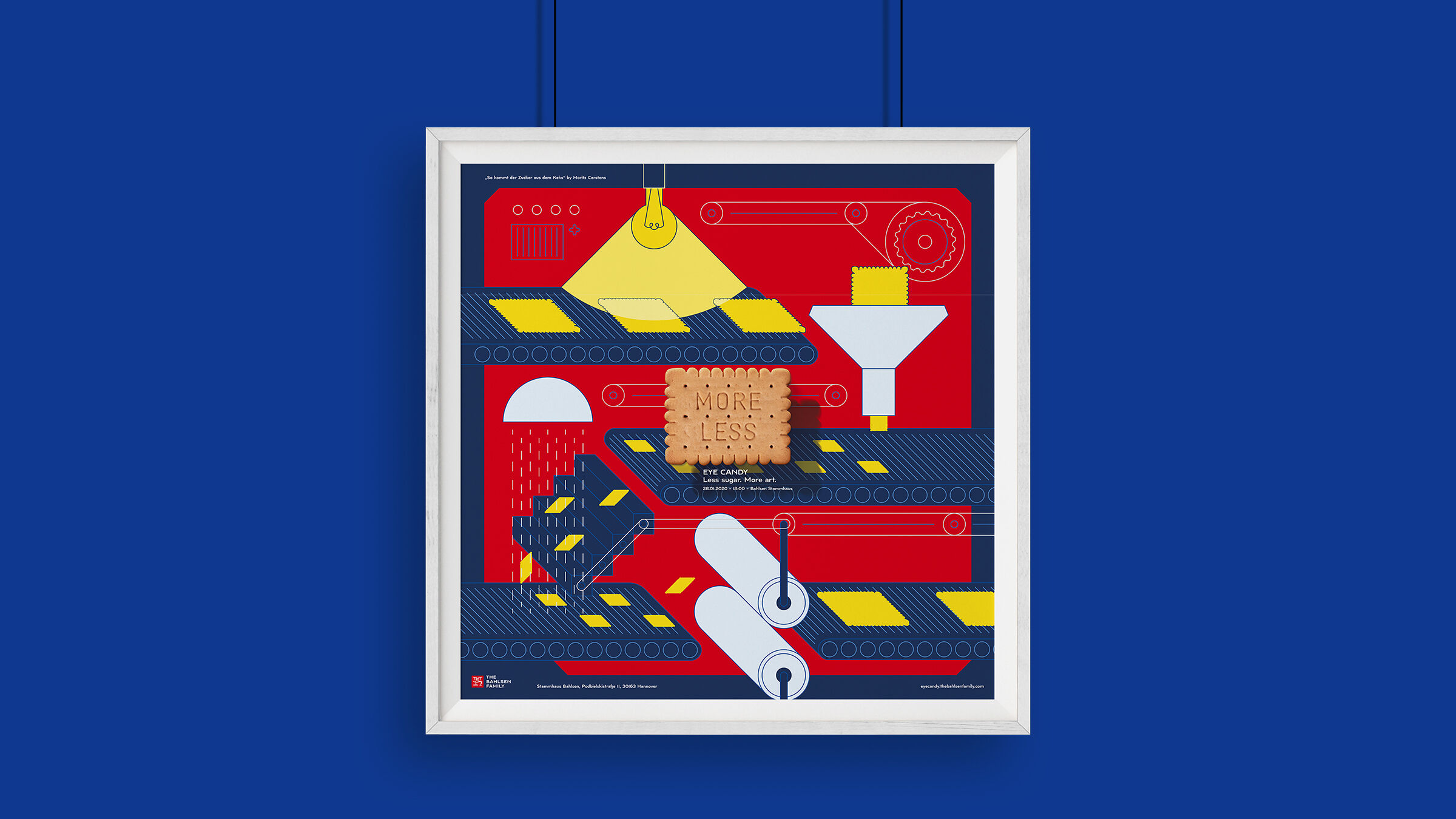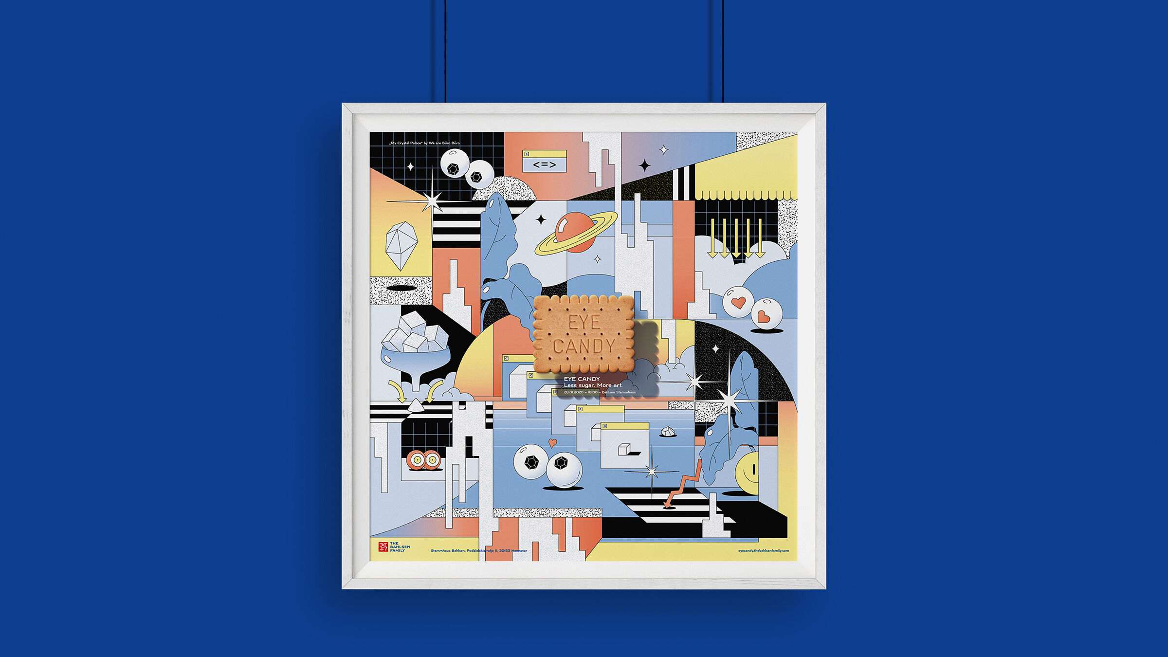Wir ersetzten die Süße des Zuckers mit der Süße von Kunst. 8 Illustrator:innen kreierten 8 Unikate als ansprechende Hülle für die wichtigsten Kunstwerke: die Kekse.