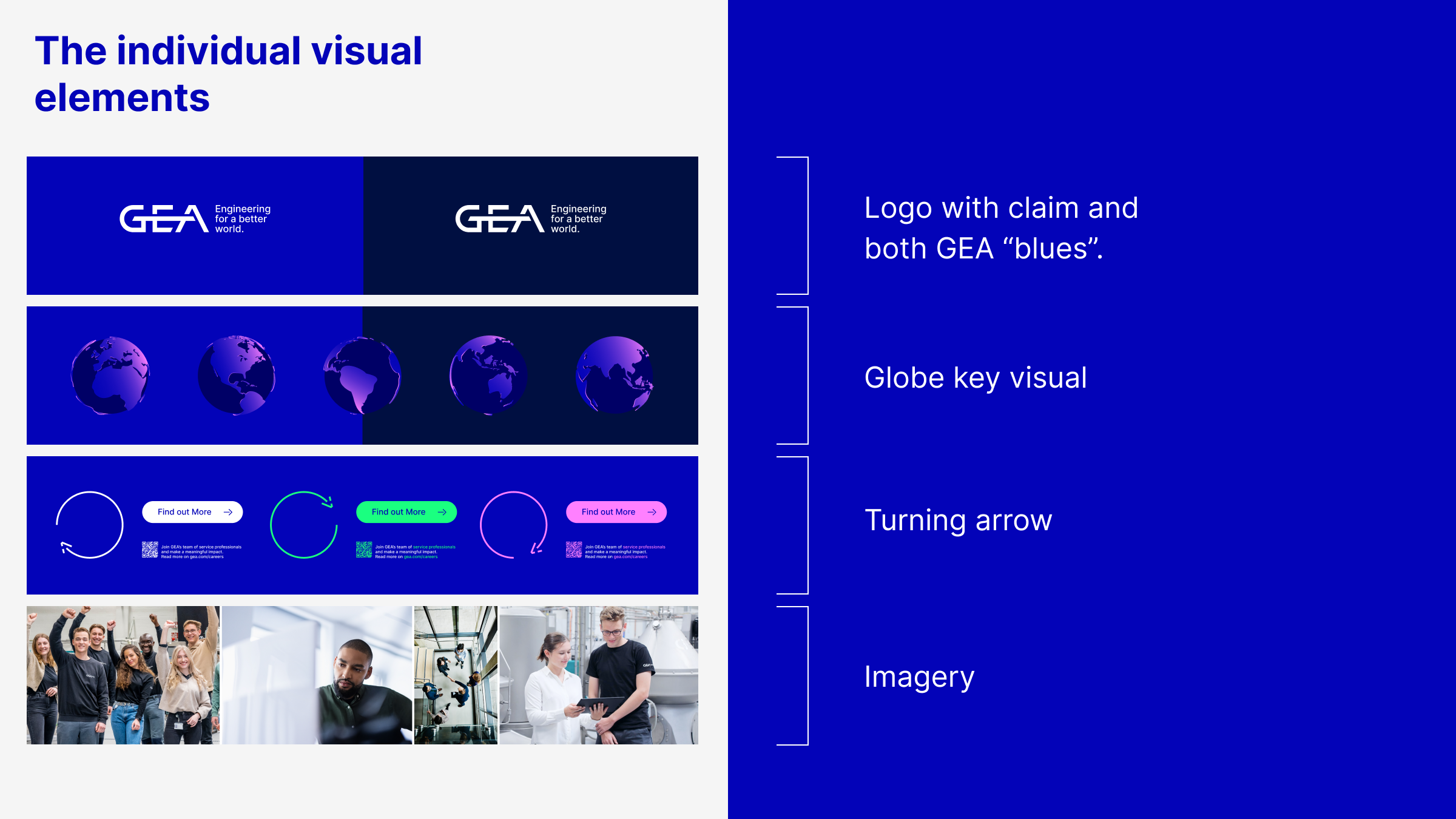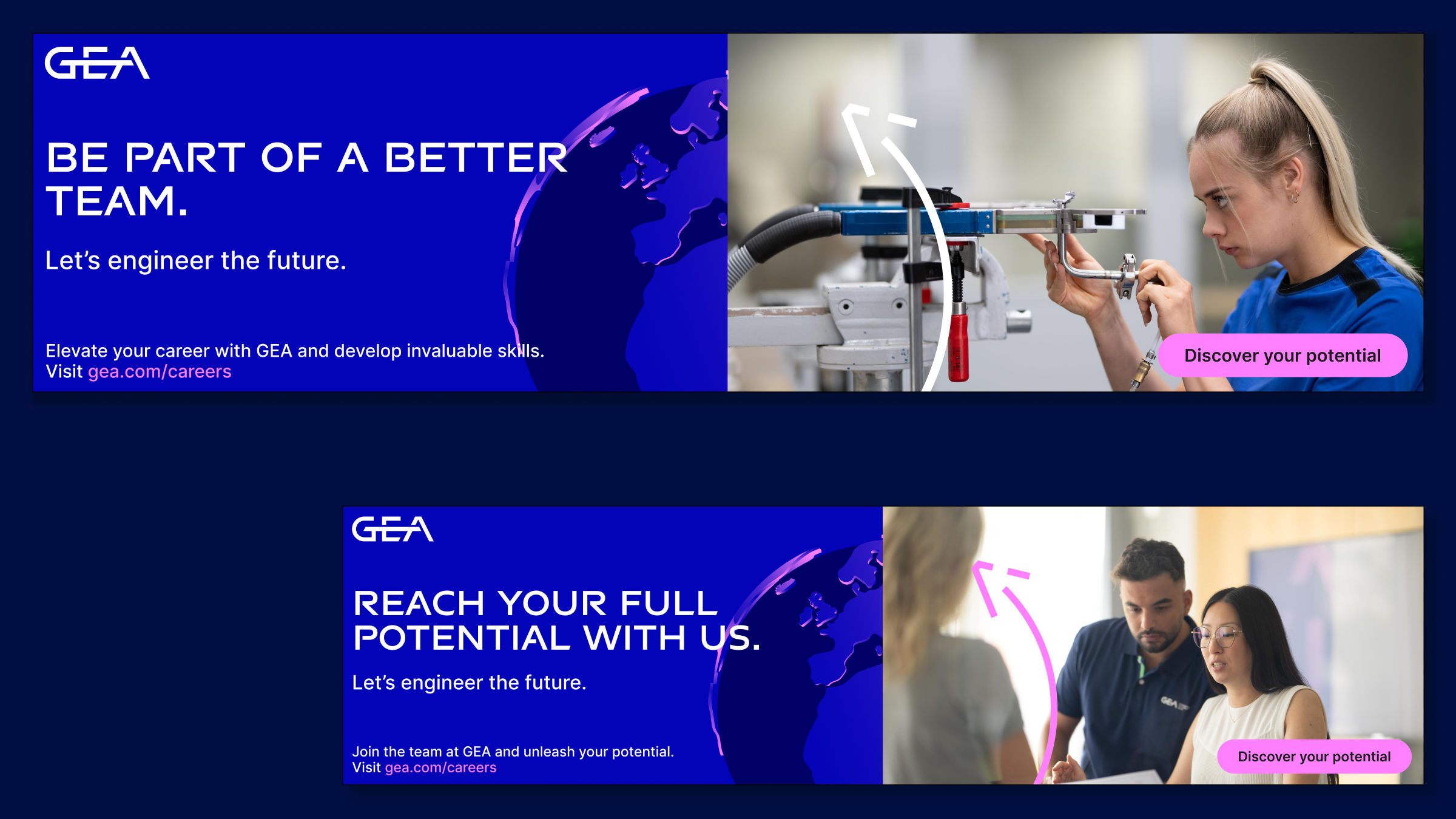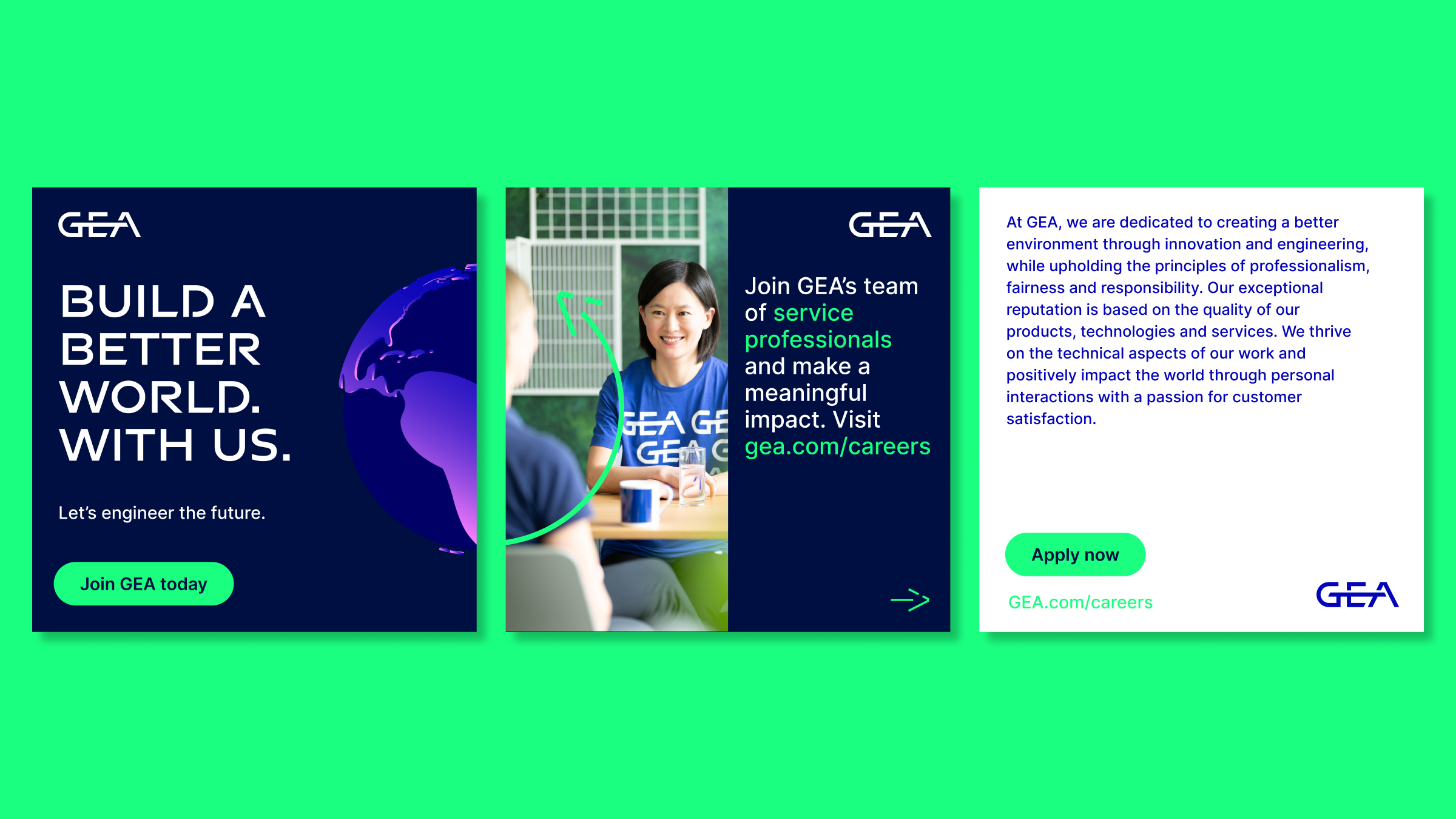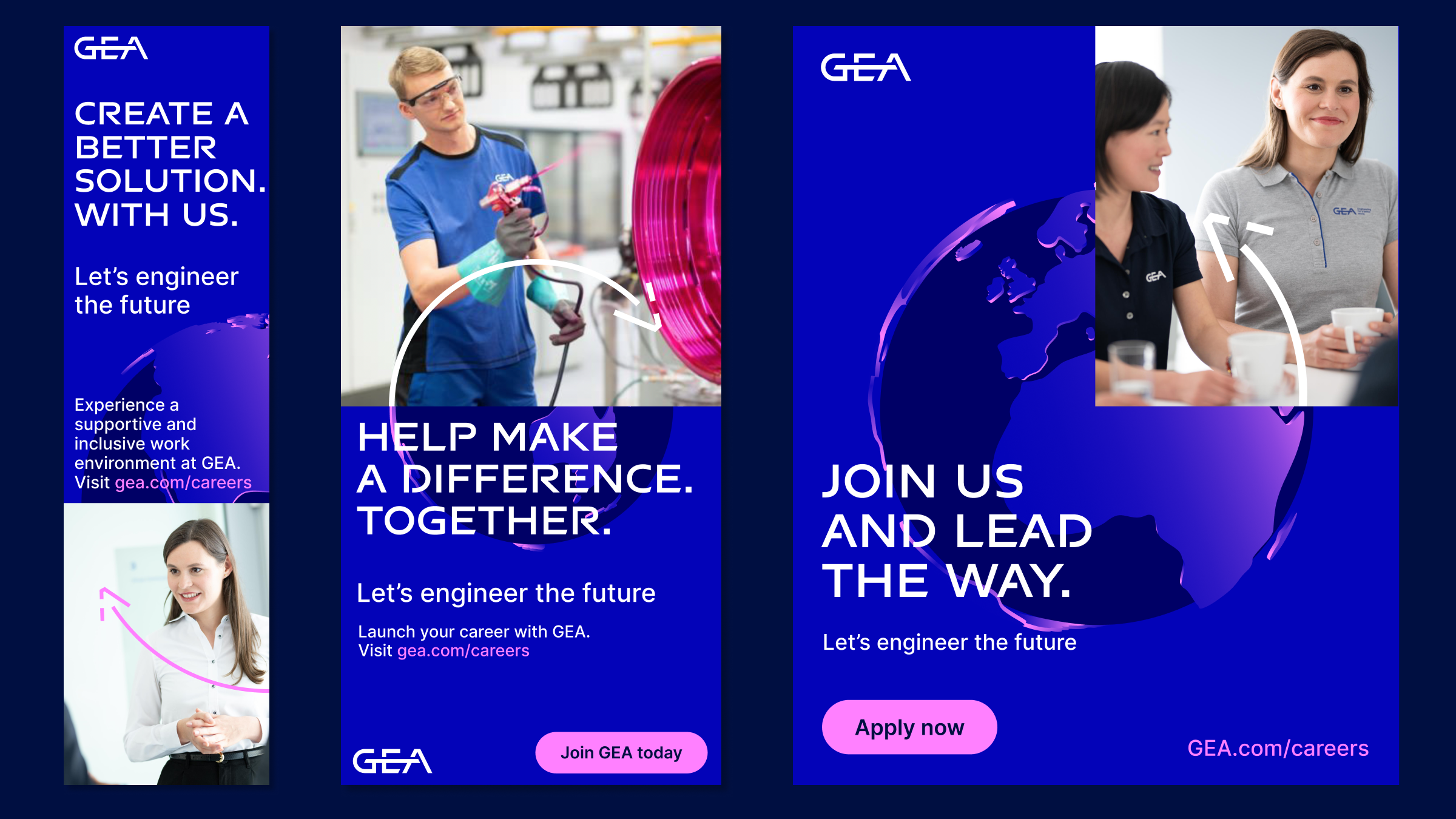 Die EVP-Tagline „Let’s engineer the future“ wurde sorgfältig ausgearbeitet, um die Kernwerte von GEA zu verdeutlichen. Durch eine durchdachte Synthese von Positionierung und Image wollten wir ein kollektives Gefühl der Zielorientierung und des Aktivismus bei bestehenden und potenziellen Mitarbeitern wecken. Die Tagline spiegelt nicht nur das Engagement von GEA für technische Spitzenleistungen wider, sondern ist auch ein Appell für Innovation und Fortschritt.