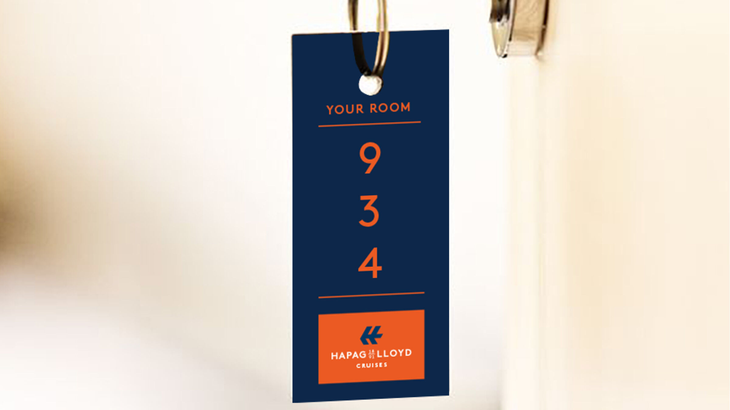 Ein unverkennbarer Markenauftritt der Marke „Hapag Lloyd Cruises“.