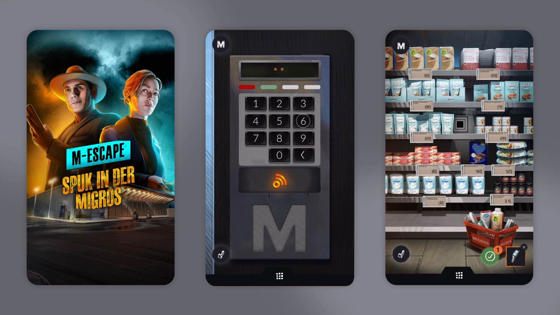 „Im M-Escape Spiel werden die Kunden der Migros selbst zu Detektiven und erleben ein immersives Abenteuer in einer abgelegenen Migros Filiale. Für das Spiel kombinierten wir spannendes Storytelling mit anspruchsvollen Rätselmechaniken aus dem Escape-Room-Kontext.