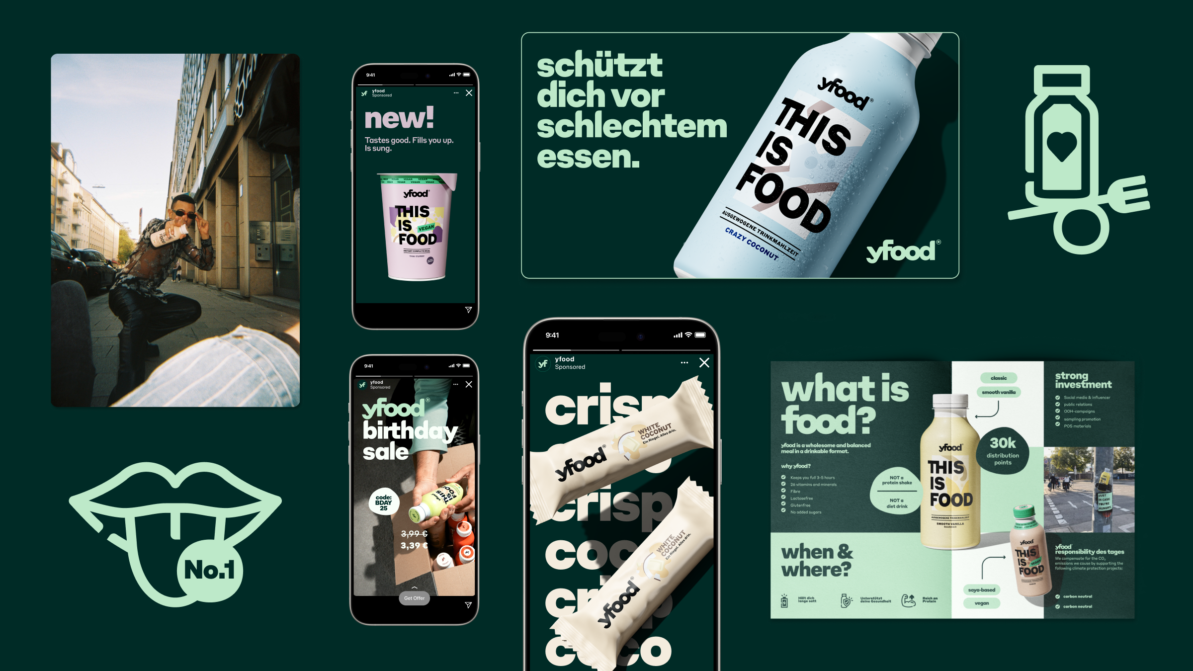 Das Corporate Design von yfood ist über die letzten Jahre evolutionär gewachsen. Im Zuge der Internationalisierung und des starken Markenwachstums wurden die bestehenden Elemente geschärft und das Branding über alle Touchpoints hinweg strategisch weiterentwickelt.