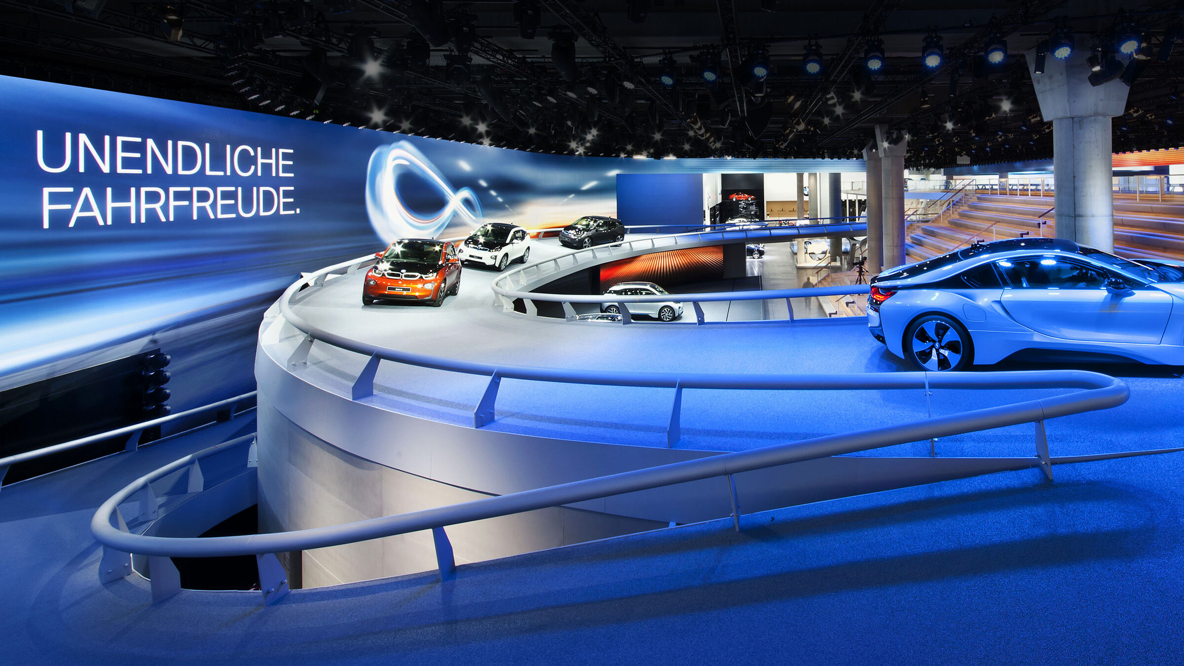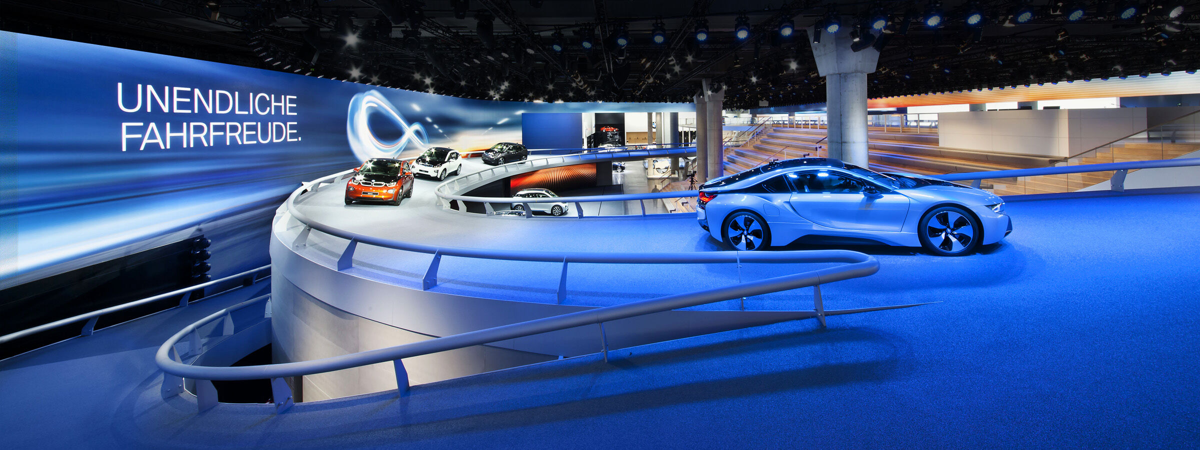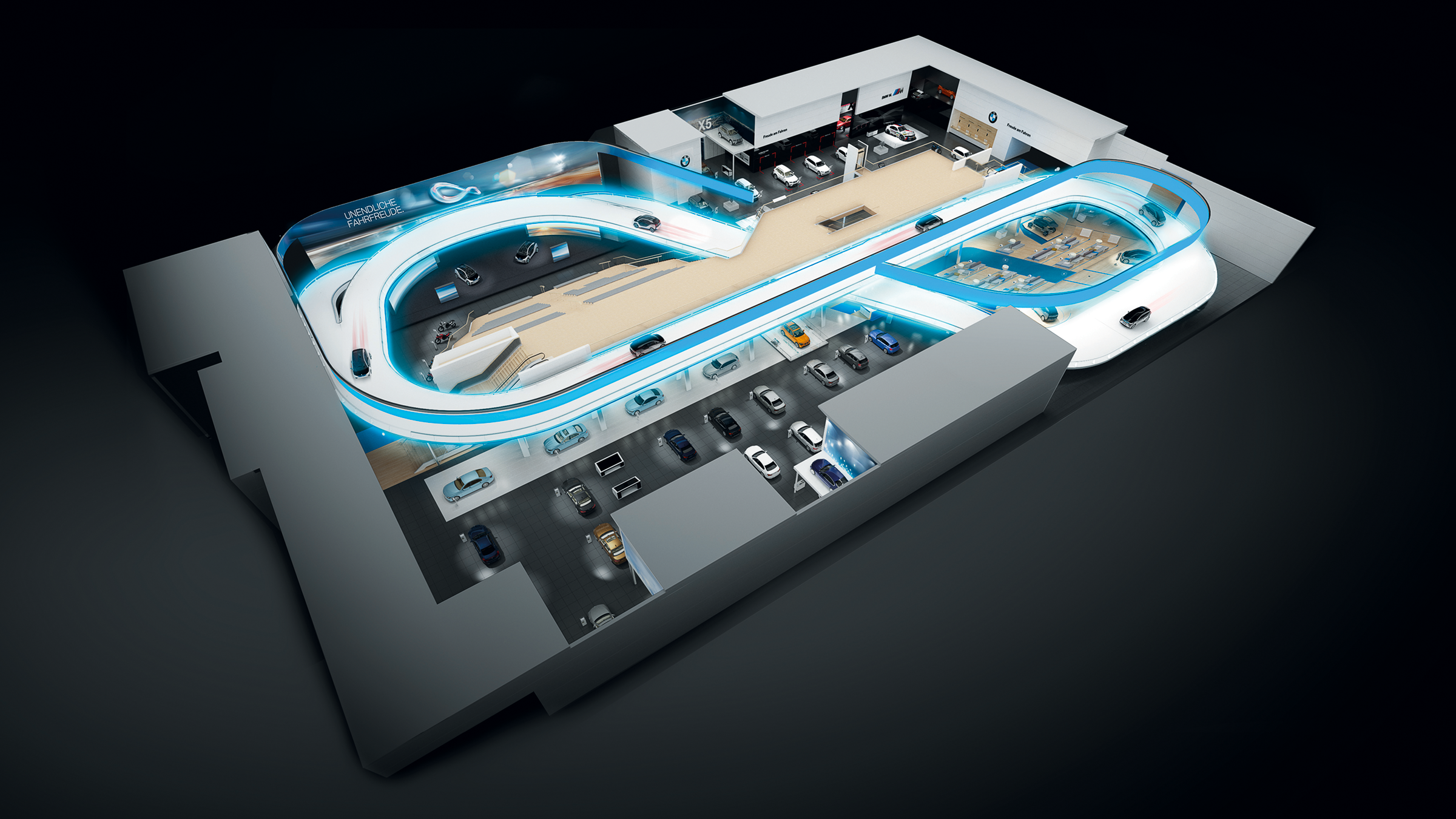 Driving brings endless fun. So it made sense to make this aspect tangible in terms of design. The exhibits drove on a track shaped into an infinity sign.