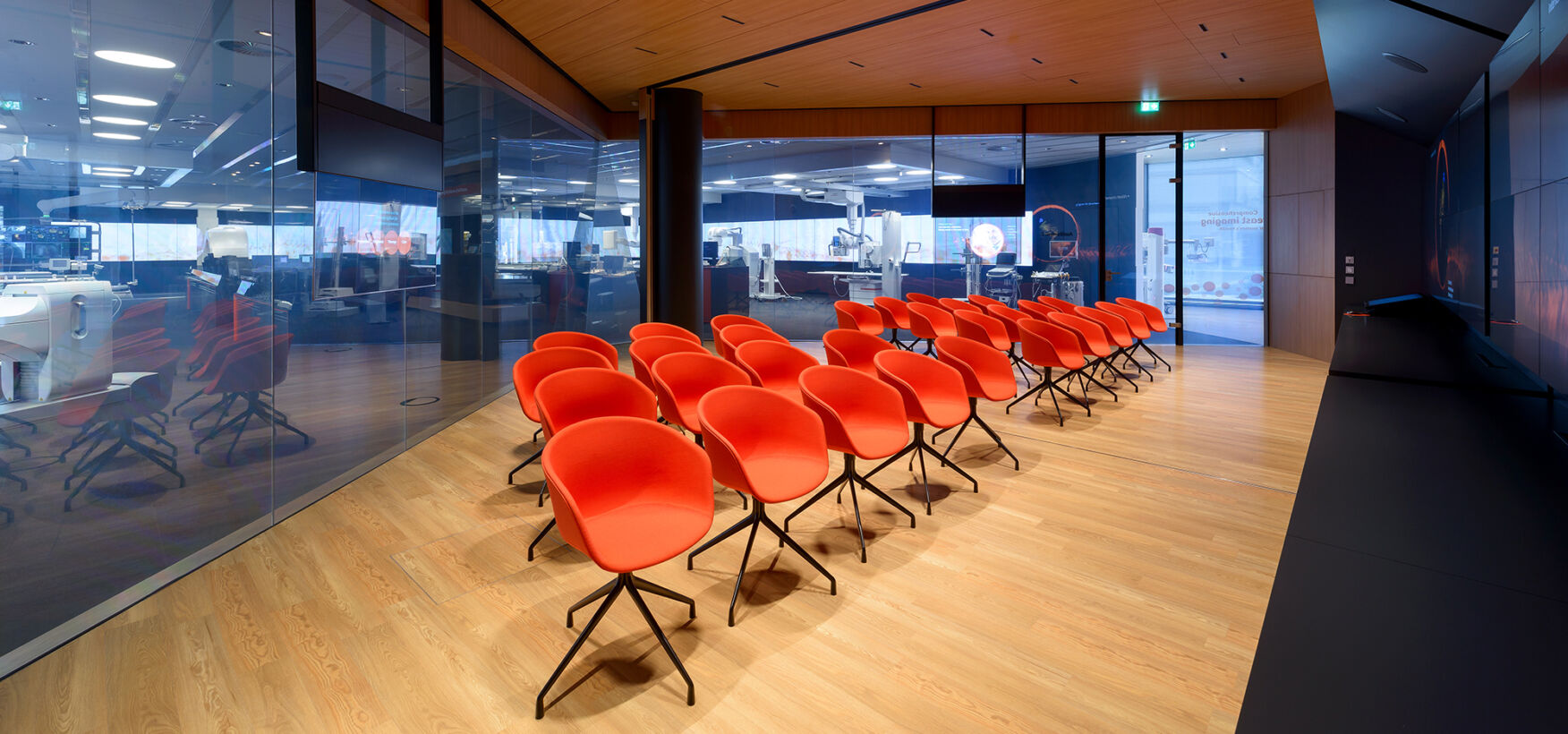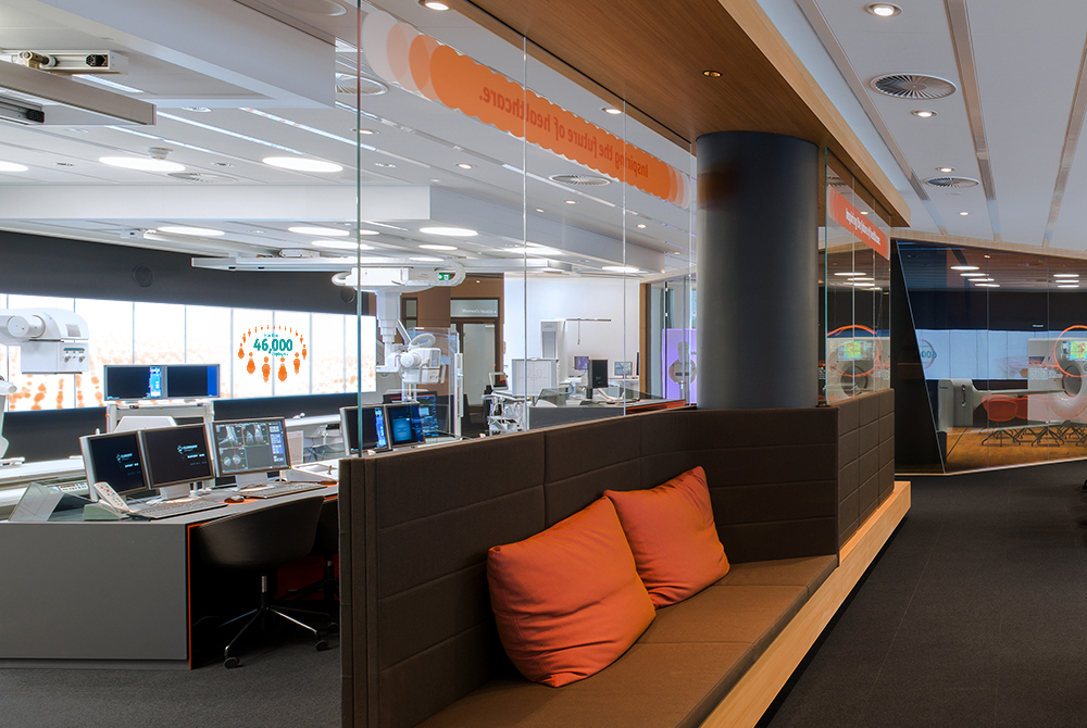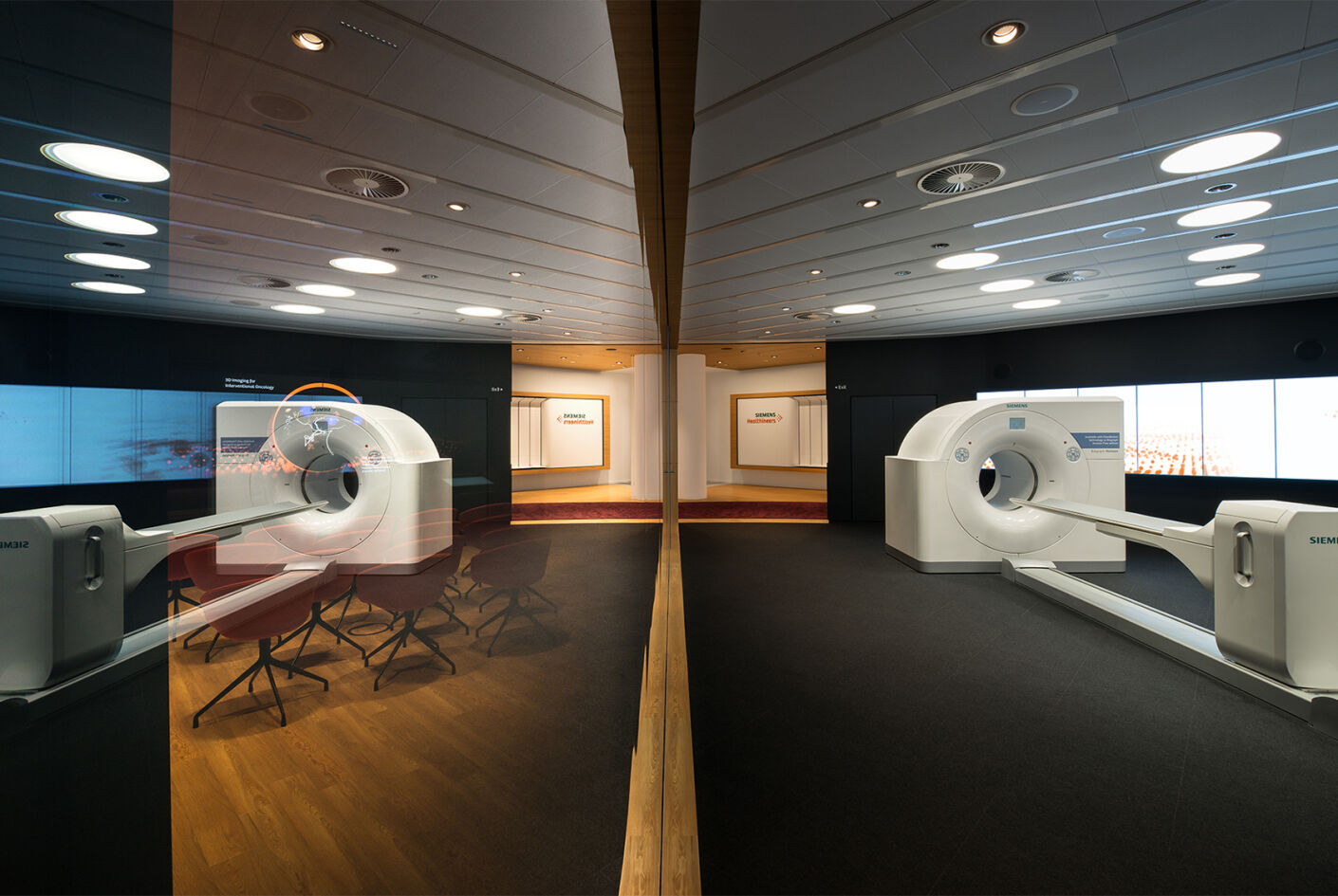 Siemens’ new healthcare brand combines all medtech activities under one roof. How do you illustrate this in a showroom while integrating 140 years of Siemens history?