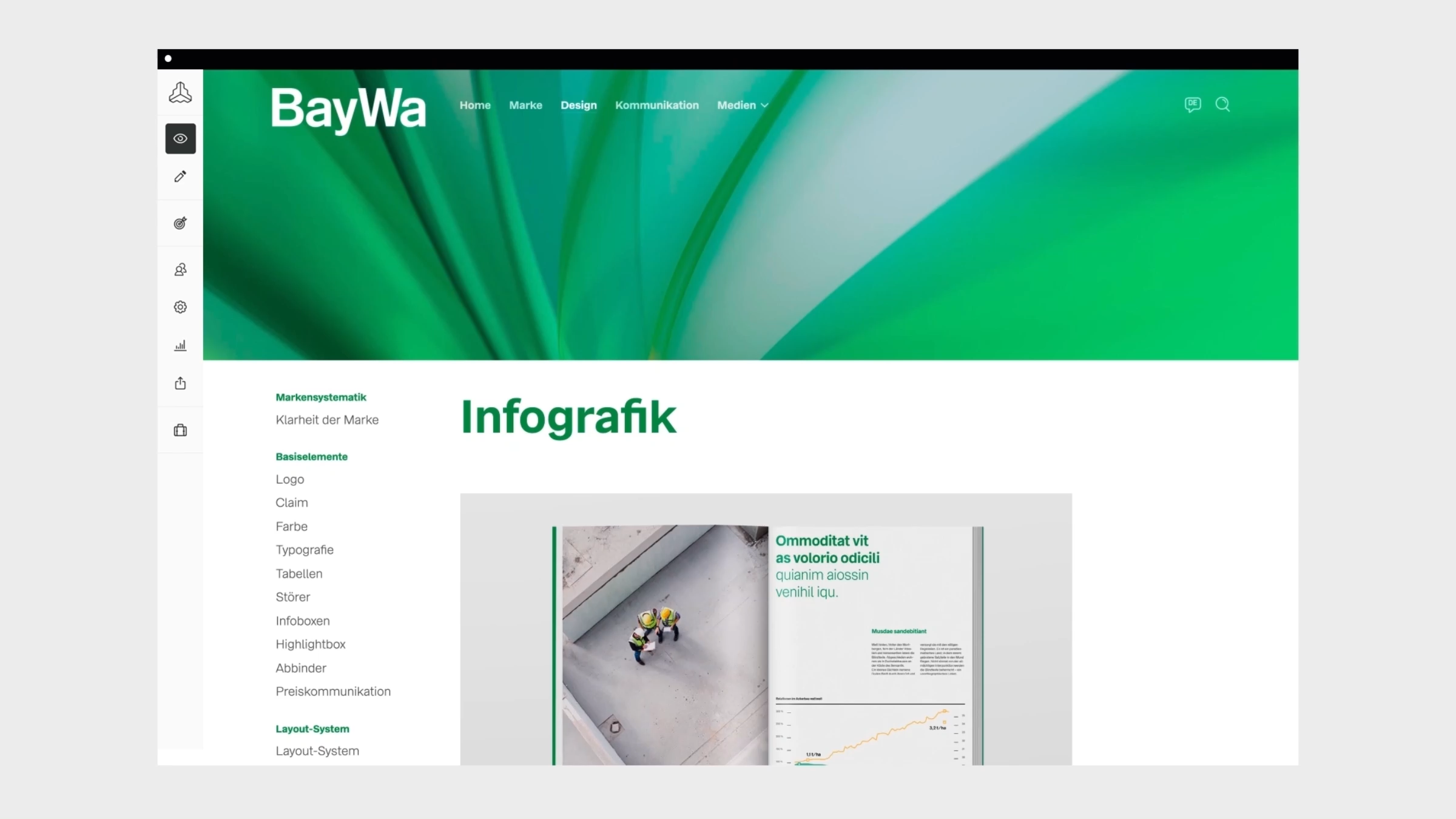 Connectedness is at the core of BayWa’s brand. To strengthen this, we placed the brand in the center and strengthened the brand name as a fixed orientation element for the entire design.