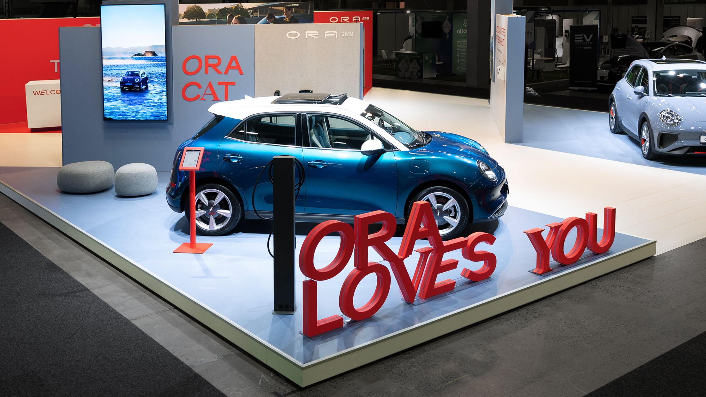 Brand presentation and product experience on approx. 300 sqm exhibition space for the brands GWM ORA and WEY.