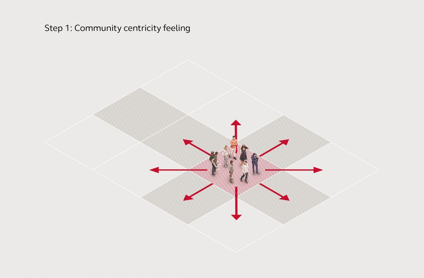 The primary and initial focus is on the brand community —with its wishes and needs. Products and services come in second place and are therefore arranged as multifaceted touchpoints.