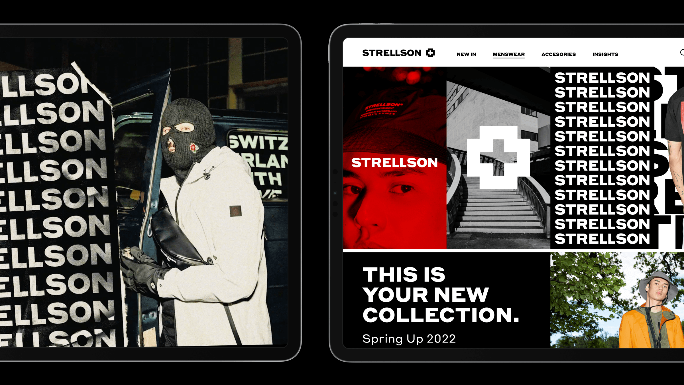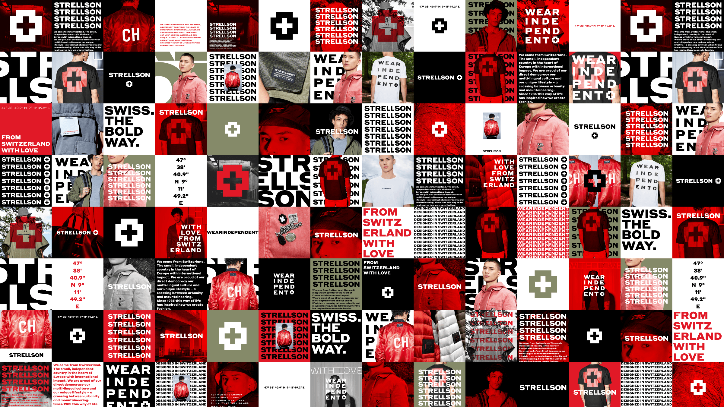 The new STRELLSON brand identity: Swiss. The Bold way. From the logo and colors to the whole attitude—the entire appearance uses a flexible kit of hundreds of images, statements and graphics (such as the GPS coordinates of Kreuzlingen, the headquarters)—and a style that positions the brand more on the streets and outdoor sports than in the office.