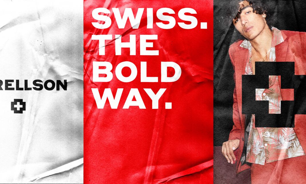 The new logo: a Swiss cross—only much bolder and more masculine. The brand name is no longer written in lowercase. The Swiss colors red and white dominate, combined with a rich black.