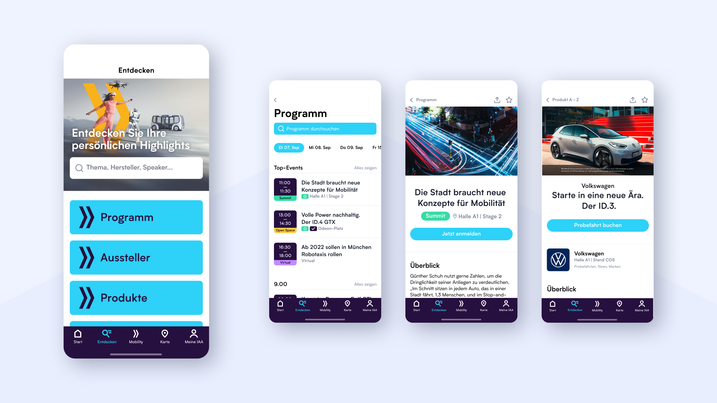 Technologically based on a trade fair app construction kit, we used a global design system to transform the app into a user-friendly, consistent, and intuitive interface.