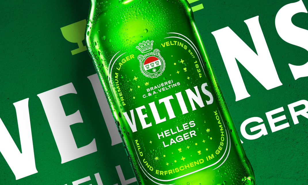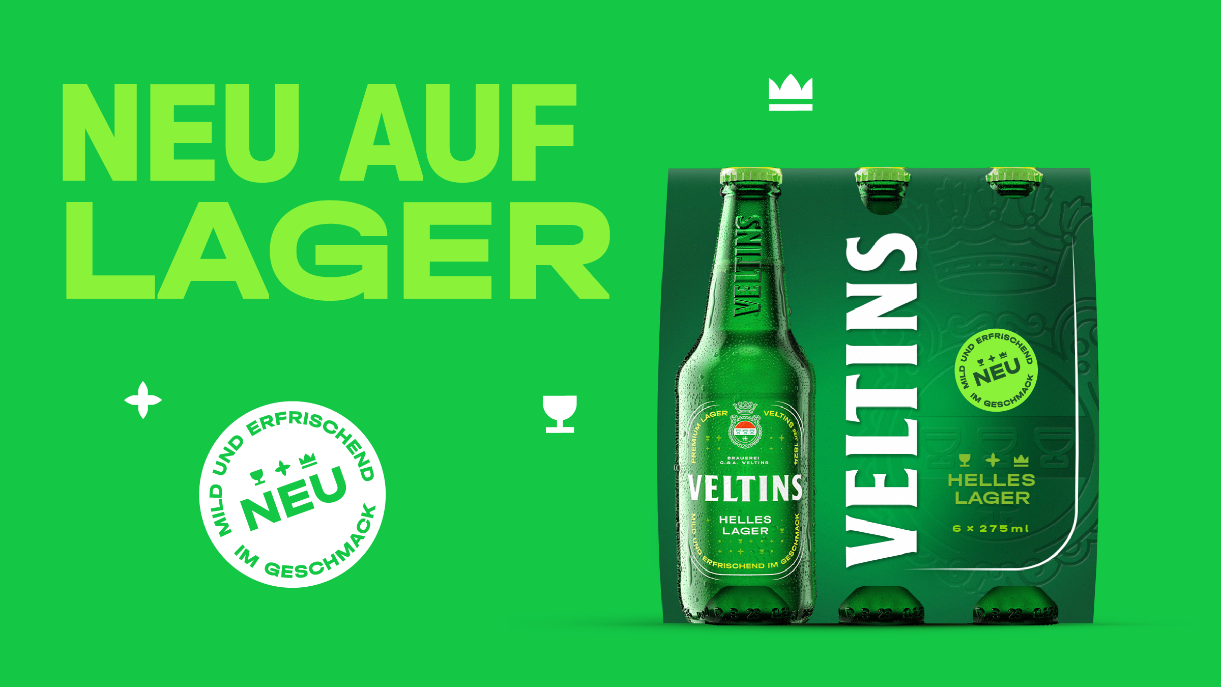 Lager beers are becoming increasingly popular in Germany. Veltins is one of the first major German beer brands to enter this segment in order to appeal to a younger, socially active target audience. The goal was to create a modern, future-oriented brand identity that can stand up to its international competitors.