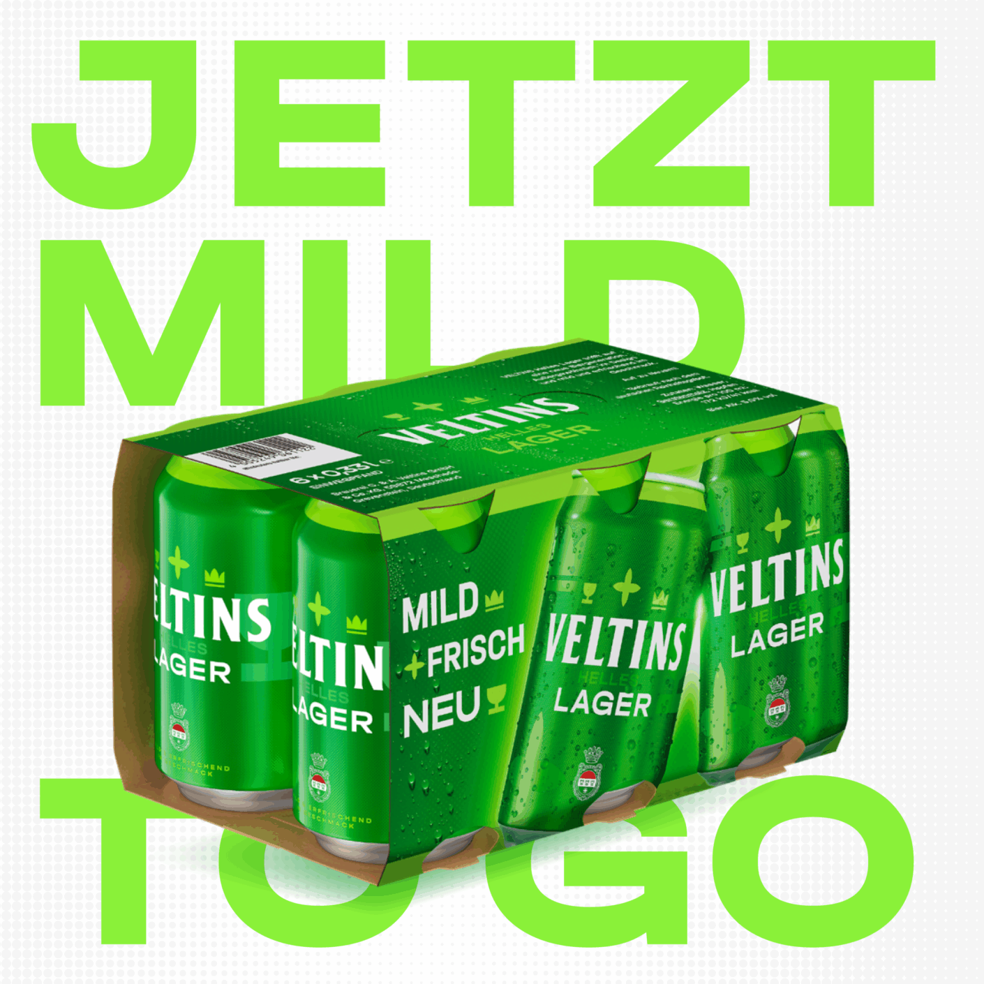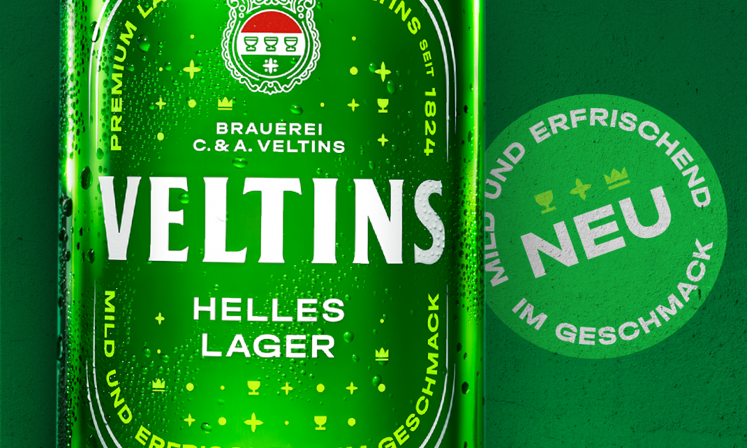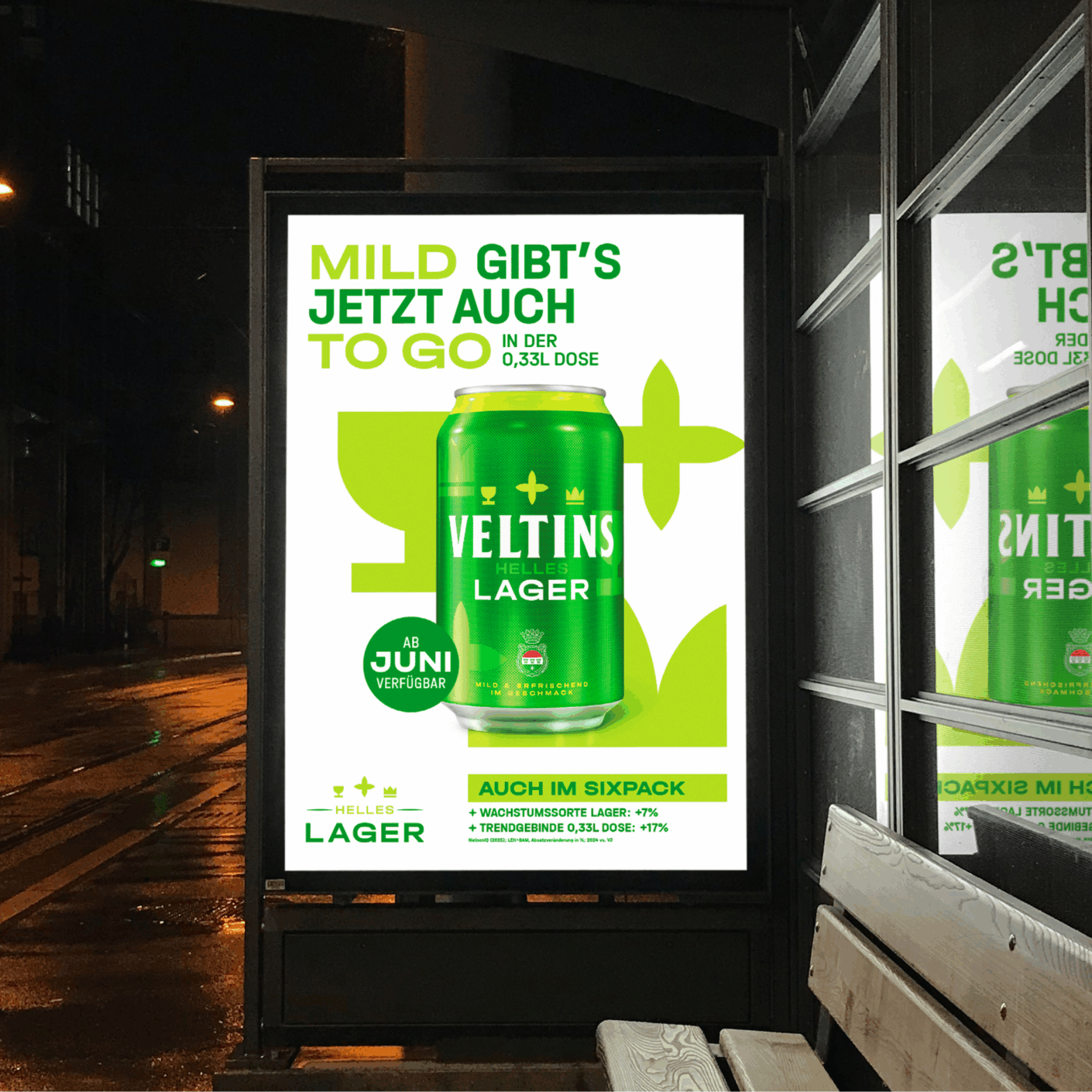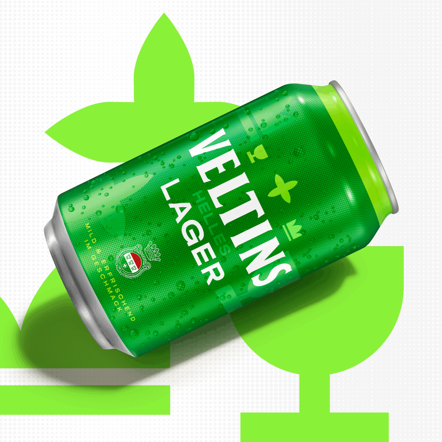 The color scheme, with the light green of Veltins’ brand DNA and an increased white space, reflects the beer’s fresh character, while also highlighting its mildness. The flexible typeface system, which reinterprets the classic Veltins typography, adds a modern touch.