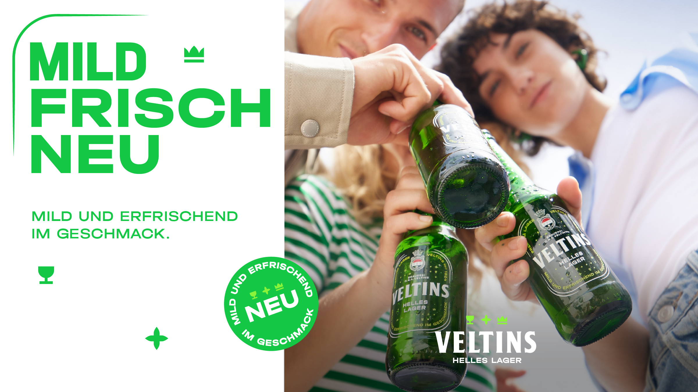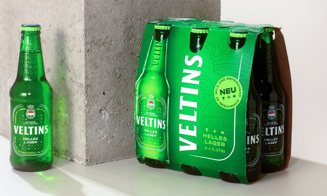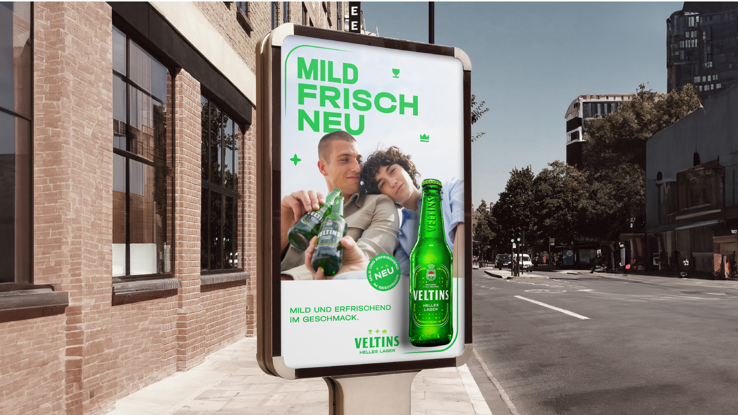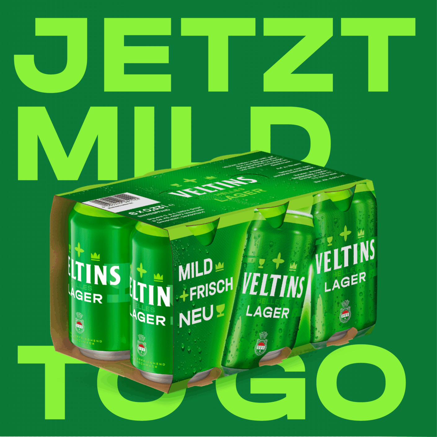 The color scheme, with the light green of Veltins’ brand DNA and an increased white space, reflects the beer’s fresh character, while also highlighting its mildness. The flexible typeface system, which reinterprets the classic Veltins typography, adds a modern touch.