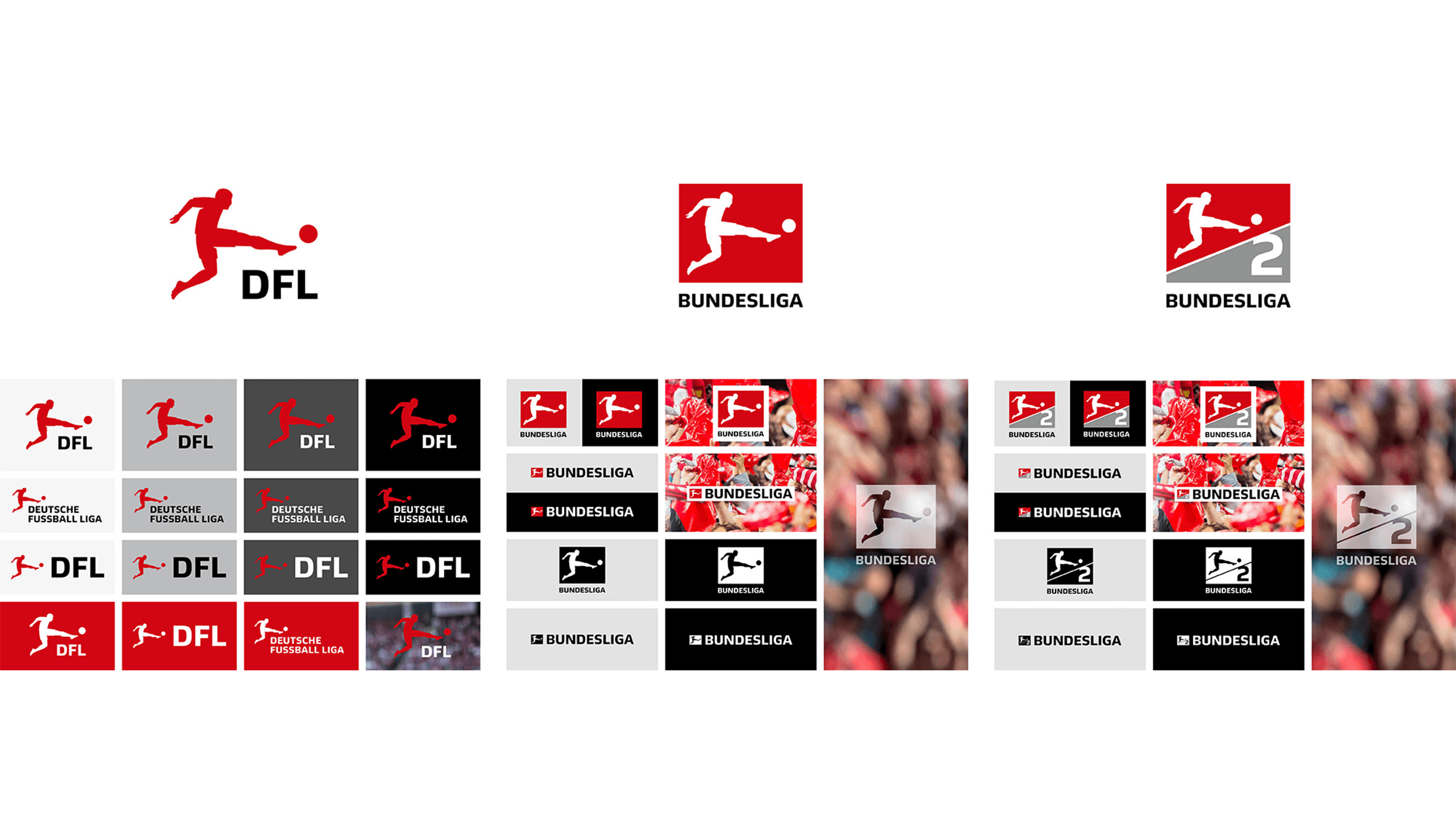 Seit der Saison 2017/18 erscheint die Bundesliga im neuen Design. Erstmals bekommen auch die 2. Bundesliga und die DFL ein eigenes Logo mit der prägenden dynamischen Figur.