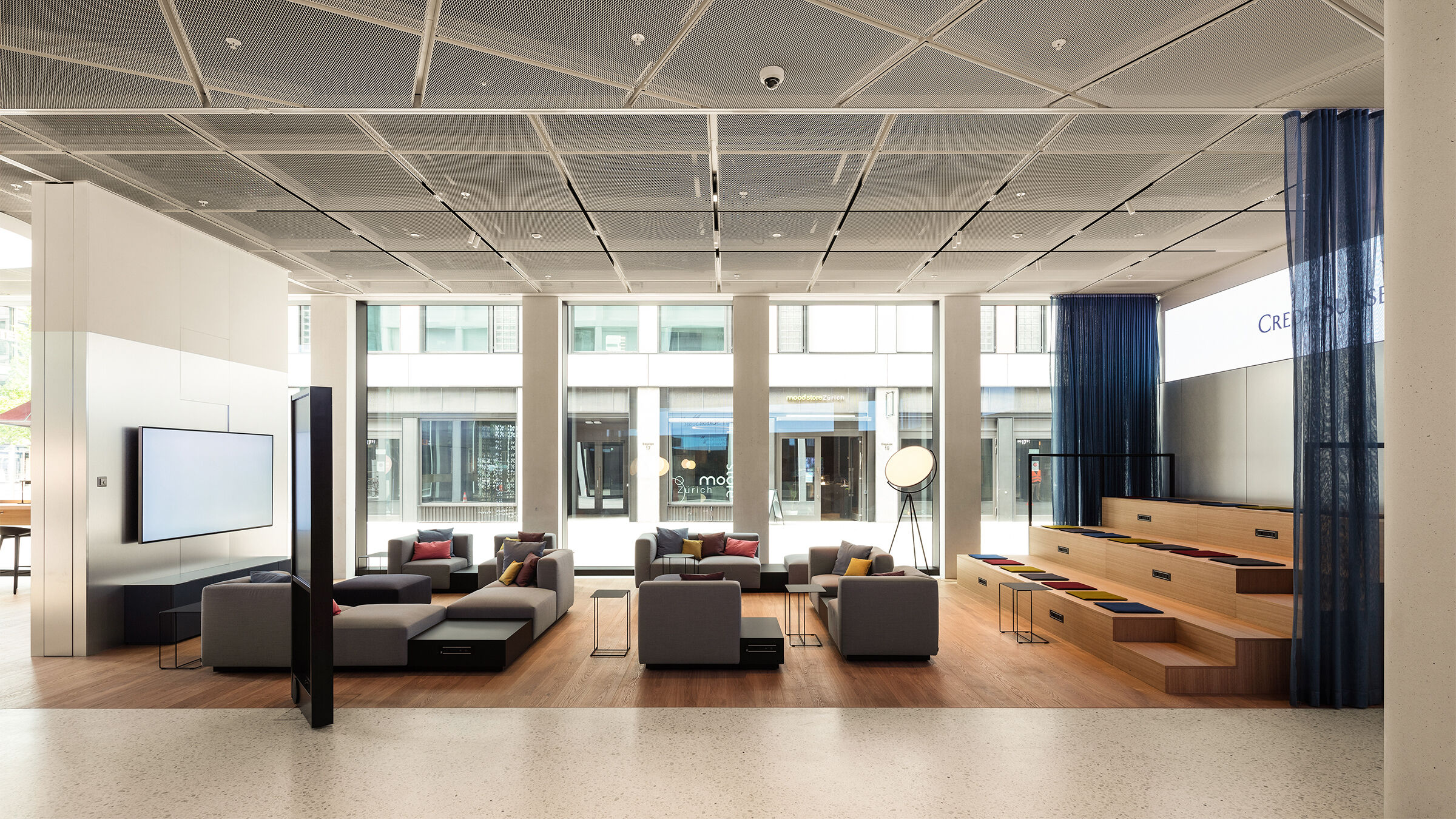 Die neue Filiale der Credit Suisse bietet mehr als nur Banking. Co-Working Spaces, Event Zone und Meeting-Module sind die Lösung für eine neue Art von Bank im digitalen Zeitalter.
